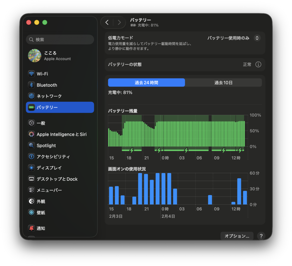 そもそも電池持ち良いMacは多分M2以降ぐらいで、M1 Proに関しては高効率コアが2コアしかなく、あんまり電池持ちに寄与する感じではなく、そこそこ減る感じ