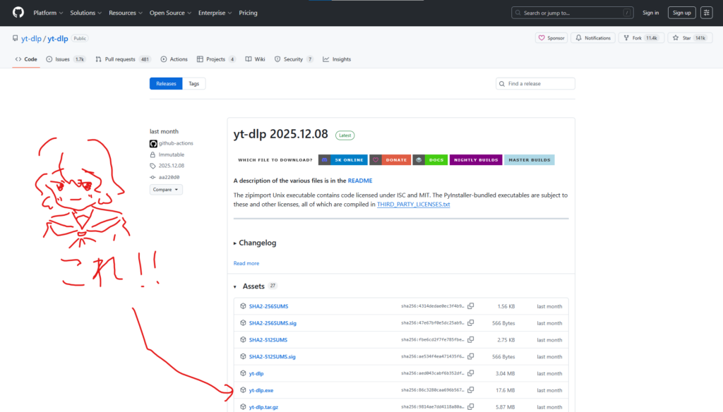 yt-dlp はこのページから入手できます。