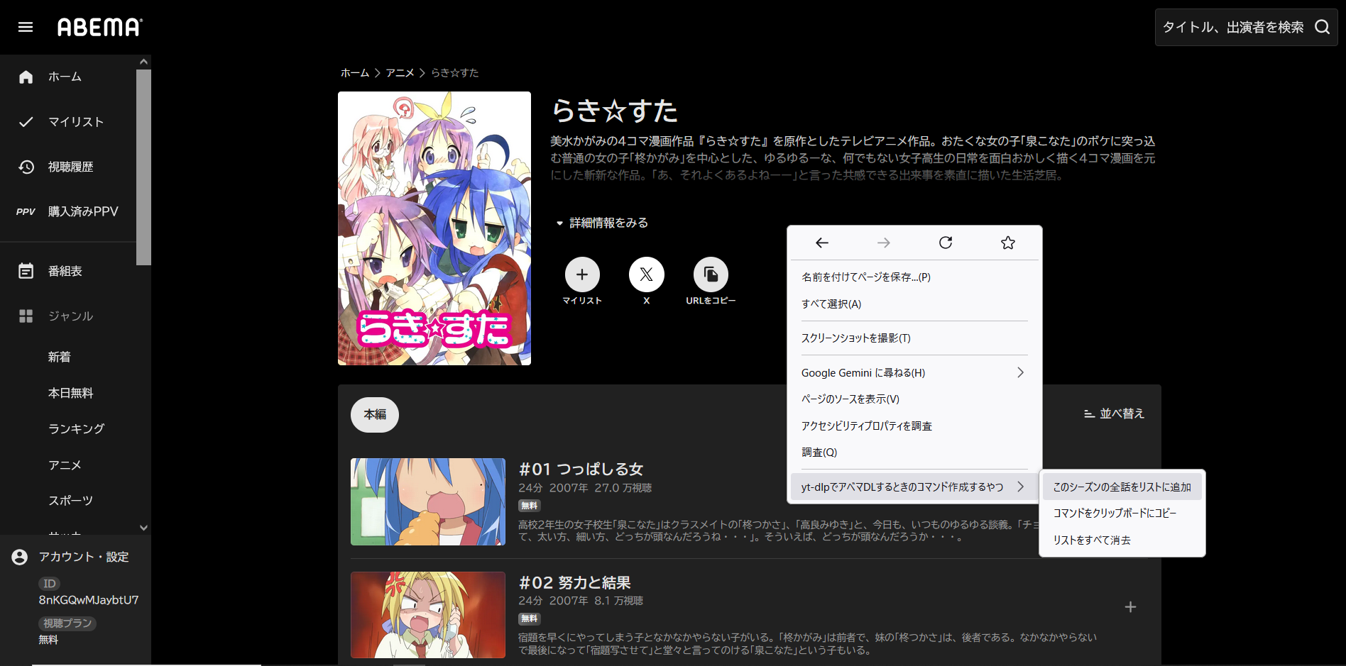 yt-dlp -o "D:\Downloads\らき☆すた\01話.%(ext)s" https://abema.tv/video/episode/25-14ctrgpbhdrg_s0_p1yt-dlp -o "D:\Downloads\らき☆すた\02話.%(ext)s" https://abema.tv/video/episode/25-14ctrgpbhdrg_s0_p2yt-dlp -o "D:\Downloads\らき☆すた\03話.%(ext)s" https://abema.tv/video/episode/25-14ctrgpbhdrg_s0_p3