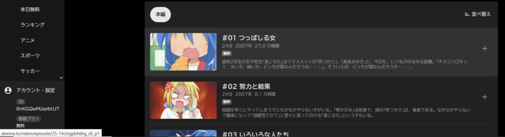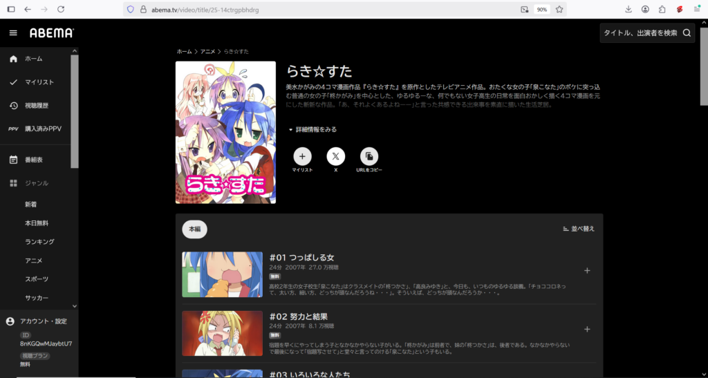 『らき☆すた』が無料だったので、ここではこれを例にやってみます。
